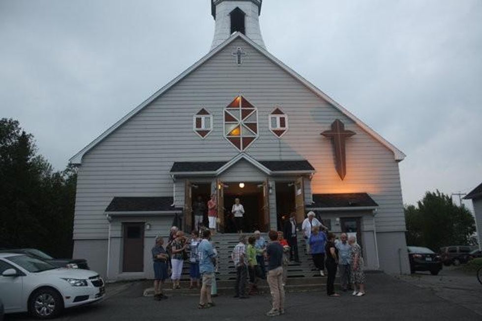 The town's mostly elderly faithful Catholics crossed the Chaudiere River for Sunday morning mass. The gospel was about hospitality, and opening one's heart to strangers. The homily asked parishioners to pray for the displaced, and the dead. The hills and central squares in this part of towns in this part of Quebec near the Maine border are dotted with light-up crosses and church steeples are the highest point in many towns. For Fr. Steve Lemay, delivering his homily at the Church of St-Jean-Vianney, the cross is a reminder that they are not alone in their suffering.