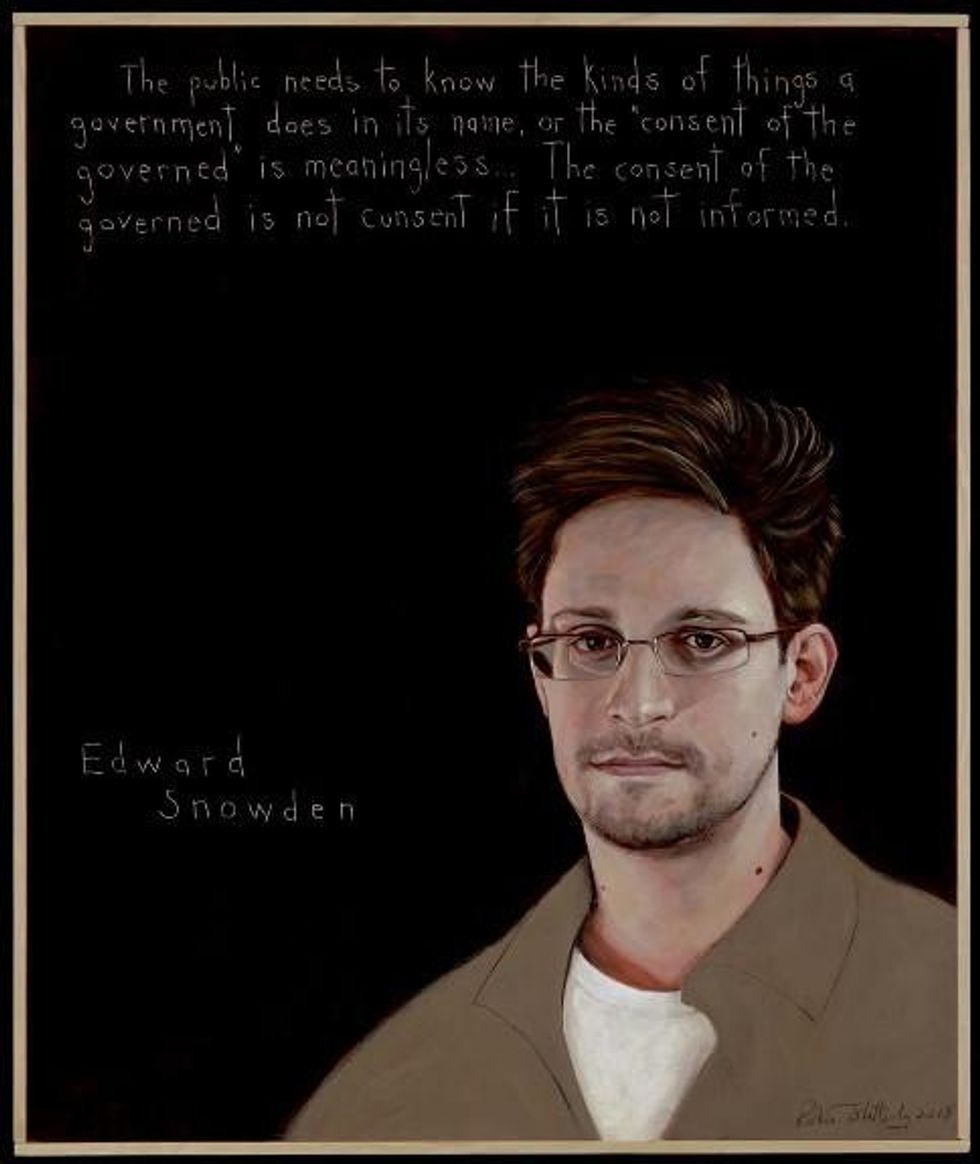 What's striking about your words on video , Edward Snowden, the ones I hear as your young, pale, thoughtful face speaks with clarity and incisiveness in response to Glenn Greenwald's questions, is that you're not talking much about what you hate, though it's clear that you hate the secret network you were part of. You hate it because it poisons what you love. You told us , "I understand that I will be made to suffer for my actions... [but] I will be satisfied if the federation of secret law, unequal pardon, and irresistible executive powers that rule the world that I love are revealed even for an instant."
