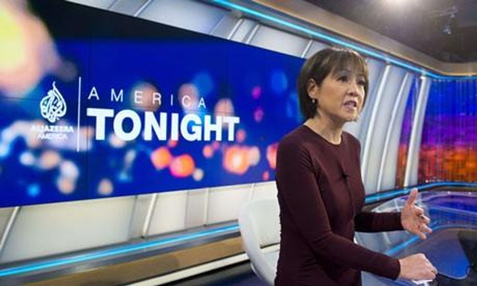 The network is Al Jazeera's first channel intended for an American audience, and the promotions run during advertising breaks betrayed some insecurity about how that audience might view journalism ultimately produced by, you know, non-Americans. (Al Jazeera is headquartered in Qatar and its parent company is run by Qatar's former minister of information.) These promotions featured many smiling white people, and some people who were not white, but all Americans: they stated their names, hometowns, and gave a brief sketch of why they worked for Al Jazeera (hint: because journalism!). Imagine MSNBC's fidgety "Lean Forward" ads on the proper ADHD medication.