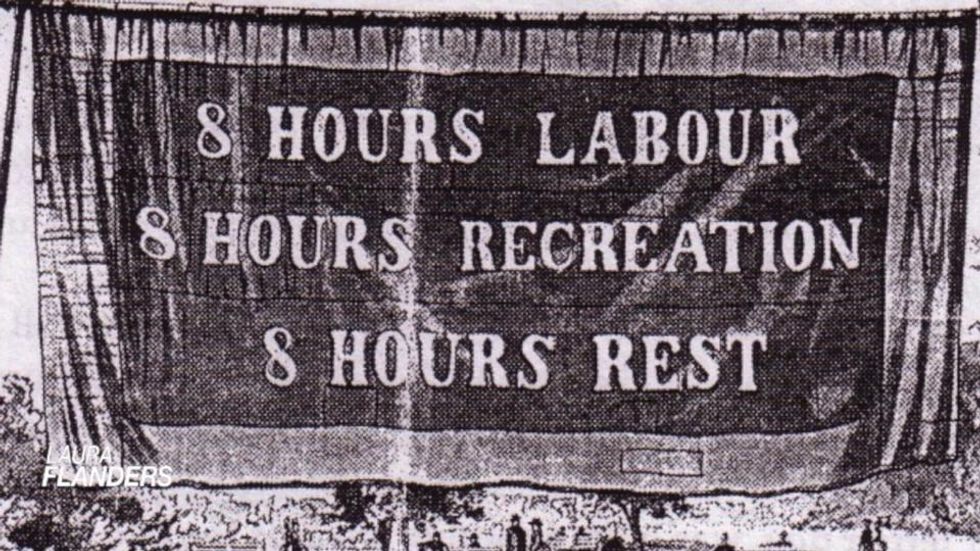 The last time US labor unions marched for that, it was for the eight-hour day, after the depression of 1884. Their banners called for eight hours work and eight hours rest and eight hours for what we will.