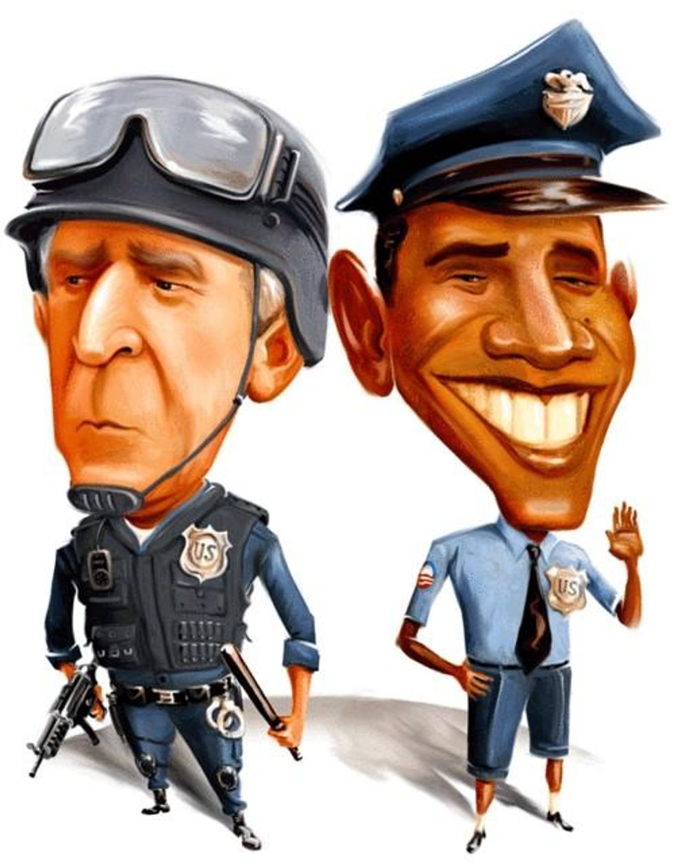 The irony here goes back to FDR, who made the phrase "four policemen" famous but apparently never mentioned the obvious: They would be not merely cops doing the arresting, but judges, juries, and executioners too. George W. Bush, too, focused only America's responsibility to be a forceful global cop (and executioner). He, too, forgot that the role of judge and jury is equally crucial.