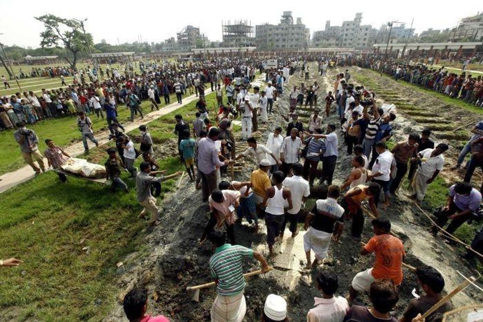 Over 1,000 innocent Syrians were killed by poison gas. (bottom photo). Over 1,000 innocent Bangladesh garment workers were killed when a huge factory building collapsed in April (top photo of mass grave).