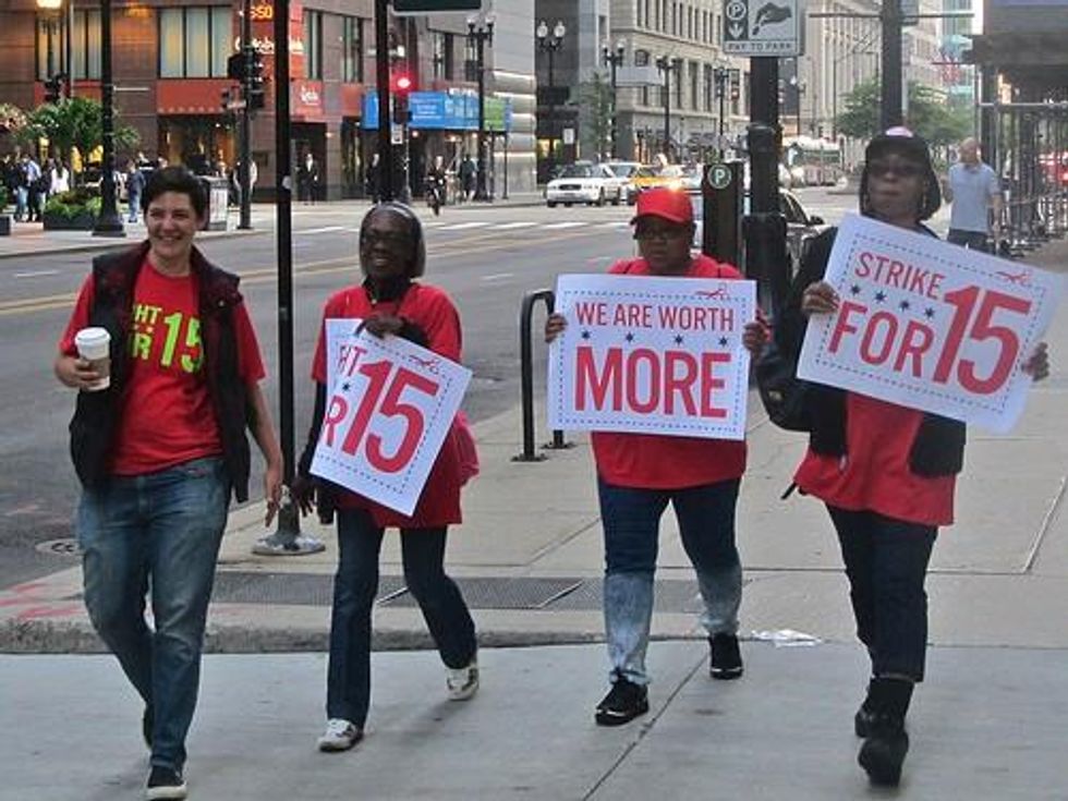 The wave of fast-food and retail strikes that spread from New York to St. Louis, Detroit, Seattle, and other cities in April was spearheaded by broad coalitions like Fast Food Forward. These coalitions are comprised of unions like the Service Employees International Union (SEIU), religious organizations, alt-labor groups like Jobs With Justice, community groups, and immigrant-rights groups. They also share common goals--Fast Food Forward, the St. Louis Organizing Committee, the Workers Organizing Committee of Chicago, and other coalitions in Milwaukee, Detroit, and Seattle are all calling for $15 an hour and the right to organize a union. And rather than organizing through one union, one store at a time, the coalitions are targeting the industry as a whole, staging one-day protests designed to inspire other workers and call attention to their struggle.