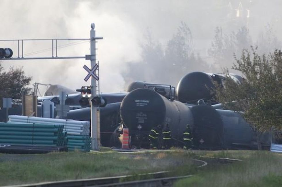 They've also shed light on the ban via railroads through populated areas. Crude oil, extracted through environmentally devastating "fracking" and then carried by railcars throughout North America, has been found to have a uniquely high content of volatile organic compounds. The train that exploded in Lac-Megantic was transporting this deadly cargo.