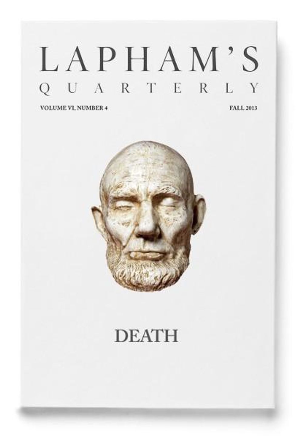 I admire the stoic fortitude, but at the age of 78 I know I won't be skipping out on the appointment, and I notice that it gets harder to remember just why it is that I'm not afraid to die. My body routinely produces fresh and insistent signs of its mortality, and within the surrounding biosphere of the news and entertainment media it is the fear of death -- 24/7 in every shade of hospital white and doomsday black -- that sells the pharmaceutical, political, financial, film, and food products promising to make good the wish to live forever. The latest issue of my magazine, Lapham's Quarterly, therefore comes with an admission of self-interest as well as an apology for the un-American activity, death, that is its topic. The taking time to resurrect the body of its thought in LQ offered a chance to remember that the leading cause of death is birth.