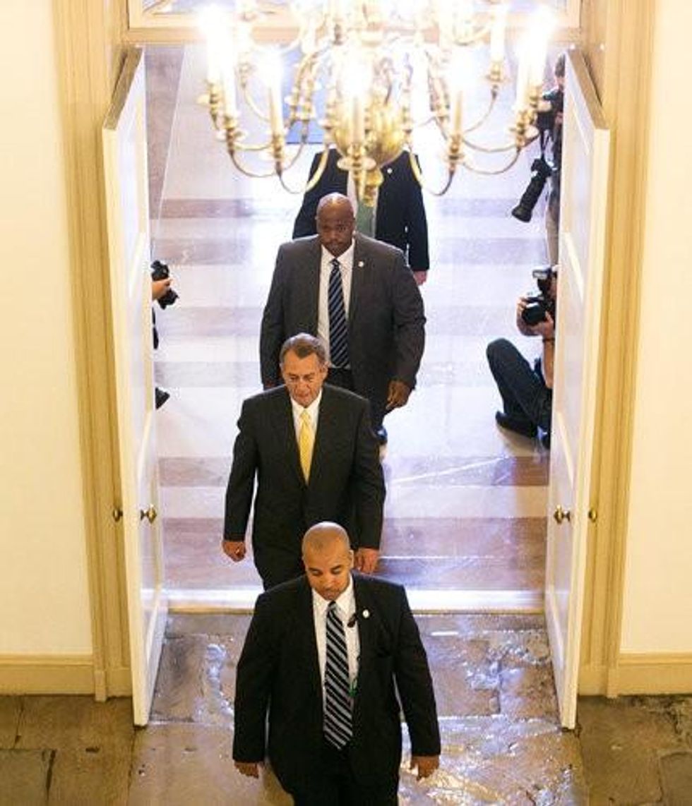 "We're in this fight. This is the moment. We all talk about doing something for our kids and our grandkids. If you want to do something for them, now is the time. We have to work together and win this fight," Boehner told members, according to a Republican in the room.