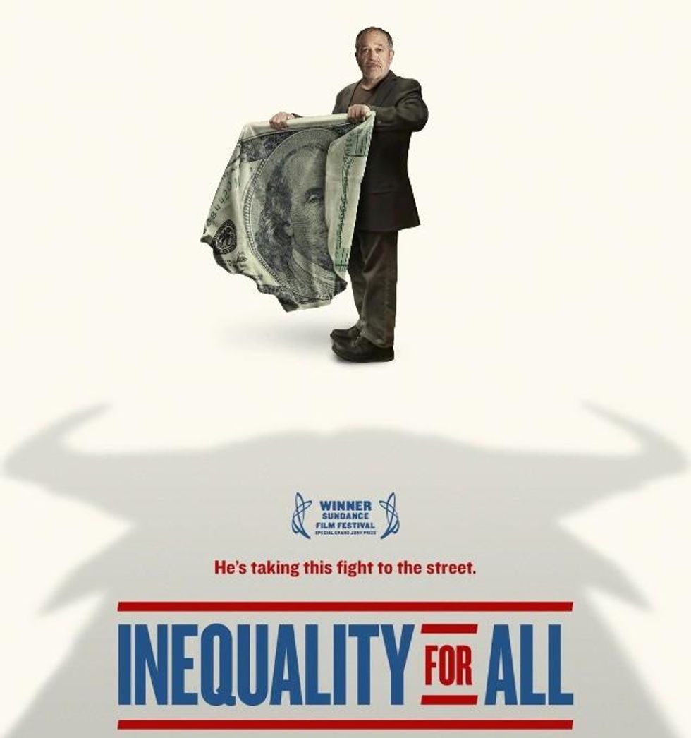 During this past summer Robert Reich, the former Secretary of Labor under Bill Clinton, toured the country promoting his documentary Inequality for All. In the film, which opened in wide release on September 27th, Reich presents the specifics of economic inequality in the United States relying on a surfeit of data to demonstrate that vast income inequality results in economic inefficiency. Reich, and Inequality for All's director Jacob Kornbluth, are clear that their intention is for the film to function as a component part of a larger political movement. As such, the film's attempt to aesthetically transmit facts through a dizzying array of graphs and charts emerges from the Democratic quandary of how to compel individuals to perceive (what Democrats consider to be) the reality of their own lives.