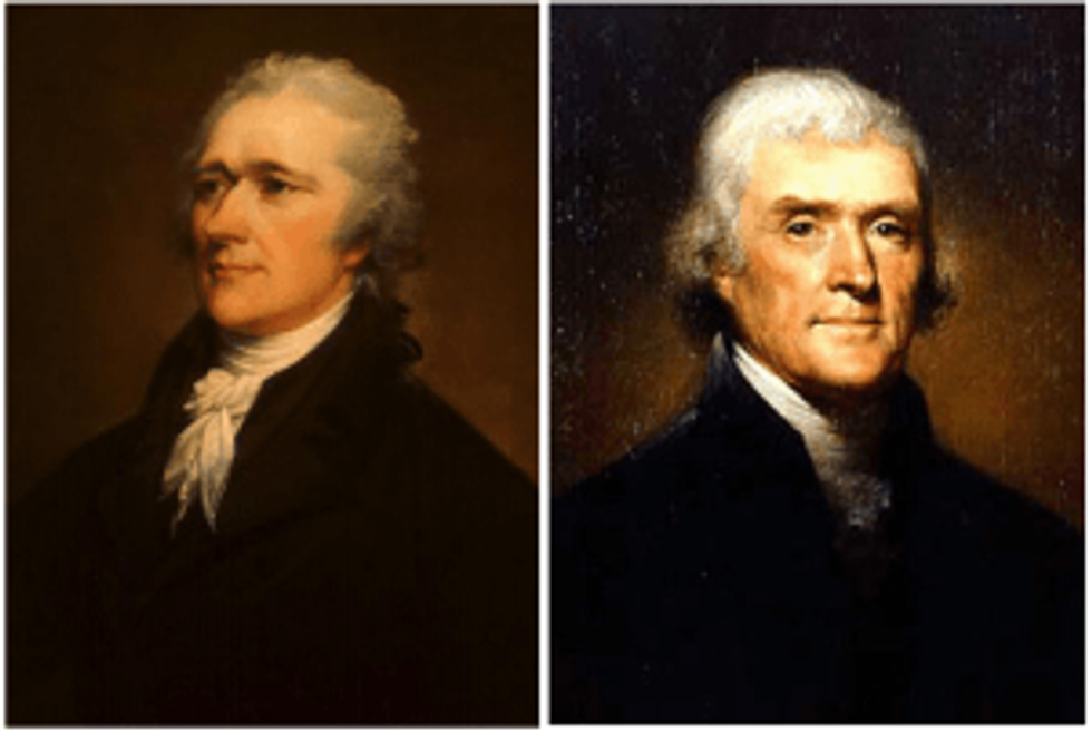 It all began when I was re-reading Gordon Wood's The Radicalism of the American Revolution (trying to escape from obsessively tracking the DC rollercoaster.) As Wood observes, the Jeffersonians and Hamiltonians divided over basically the same issue that plagues us now: How much of a role should government play in people's lives? (Though the clash back then was so fierce, and split American society so sharply, that it makes today's politics look rather mild by comparison.)
