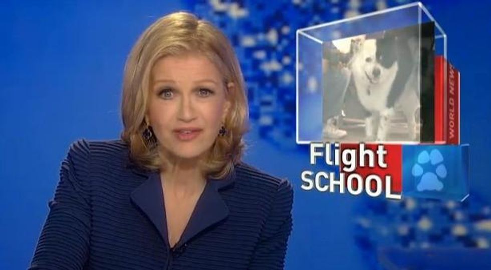 ABC World News led with gas prices falling. They also did reports about unsafe dog treats, those new Apple products, a study of sibling rivalries, a possible UFO sighting in Iceland and popular baby names, and closed with a rather long report about a class that helps prepare dogs to fly in airplanes.