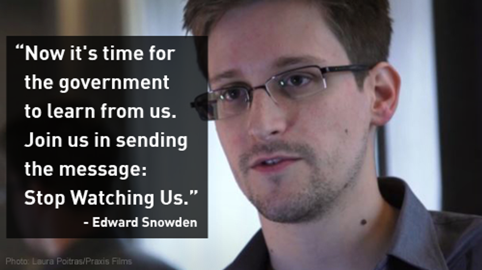 This Saturday, you can join the growing movement calling on the government to get out of our private lives, at the biggest protest yet against NSA spying. Organized by the StopWatching.Us coalition - a group of 100 organizations, companies, and public figures - the rally has received the support of celebrities, politicians, and the whistleblower responsible for the robust public debate that has come out of his disclosures. In a statement Snowden provided the ACLU, he writes: