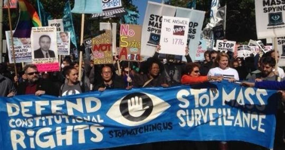 This Saturday, a coalition of groups including the ACLU, Public Citizen, the Electronic Privacy Information Center (EPIC), the Libertarian Party and many more gathered on the National Mall to protest mass surveillance by the National Security Agency. This is a positive first step in letting our elected officials know that ceasing the collection of private personal information about you is important and mass surveillance should be prohibited. Visit here for more information about this weekend's rally. Join the movement to end these burgeoning, tyranny-building abuses by runaway federal agencies.