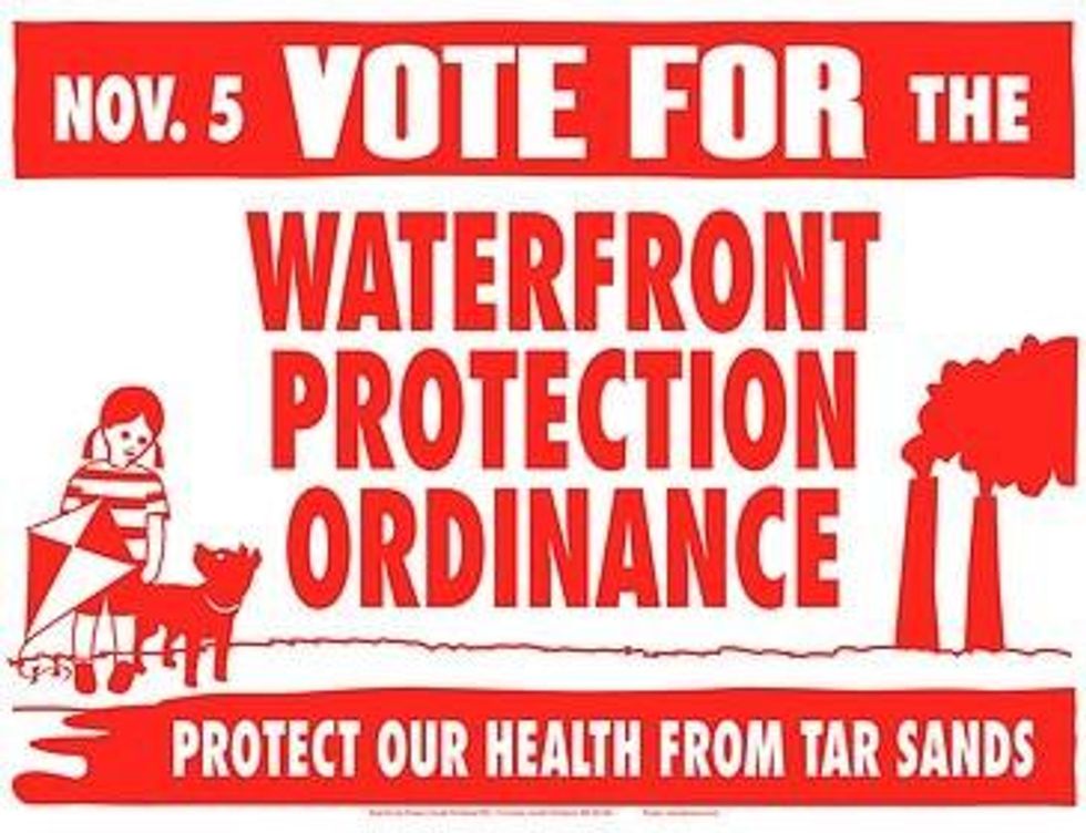 The Working Waterfront Coalition has responded to the groundswell of opposition to tar sands shipment with attempts to portray the ordinance as a destructive tool that would force them to halt all current operations. To lend credence to their claims, they spent $15,000 on an economic analysis that found shutting down the city's oil operations would result in the loss of 5,600 jobs and $252 million in earnings. One thing the study failed to mention is that nowhere in either the language or the intent of the ordinance is there anything to suggest current operations would have to be shut down.