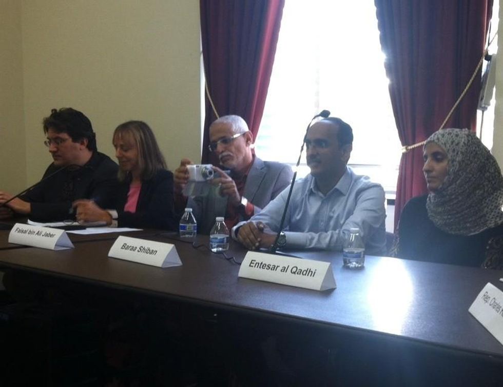 Faisal bin Ali Jaber, who had relatives killed in a drone strike in the Hadramawt province in August 2012, also delivered remarks.