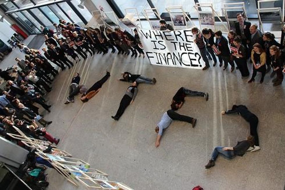 Activists lay down in the halls of the United Nations Climate Change Conference in Warsaw, Poland last week, forming the letters "W.T.F." with their bodies. The letters stood for "Where's The Finance?," and their message was clear--the failure to revamp the funding to help developing countries green their economies and prepare for climate change impacts had turned the conference into a deep disappointment.