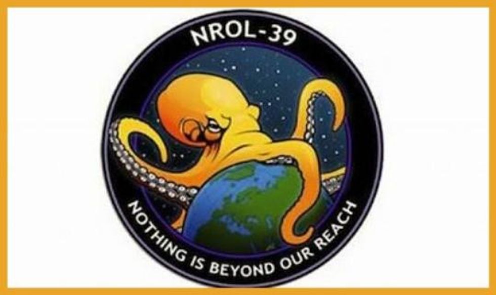 A top-secret rocket carrying spy satellites for the National Reconnaissance Office launched from the central California coast late on Thursday, and it had a large badge emblazoned on the side.