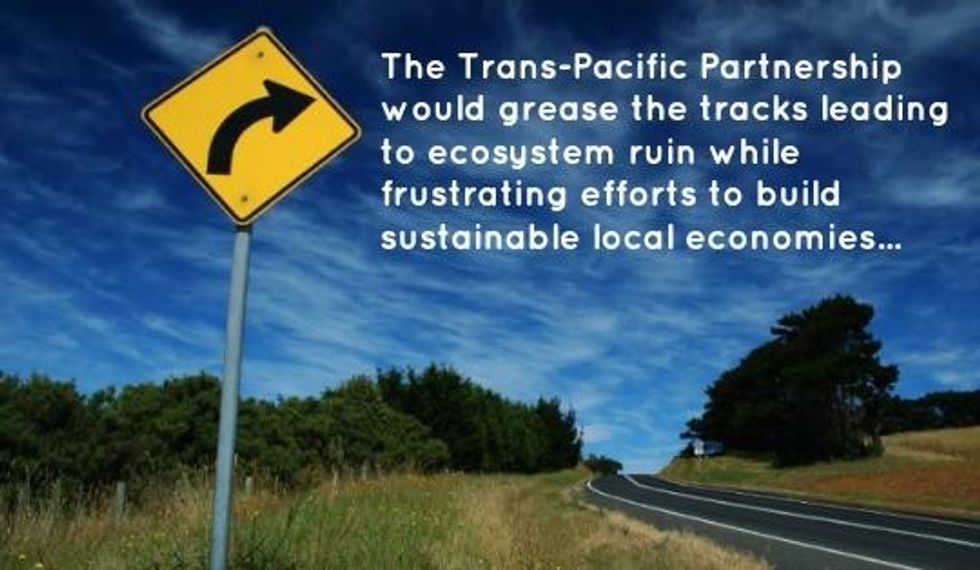 "Want to label GM foods? Sorry, that's a barrier to trade. Want local schools to buy healthy food from local farmers? Nope, that might violate the rights of Big Ag. Want to protect a forest? Stand aside, you're in the way of profits."