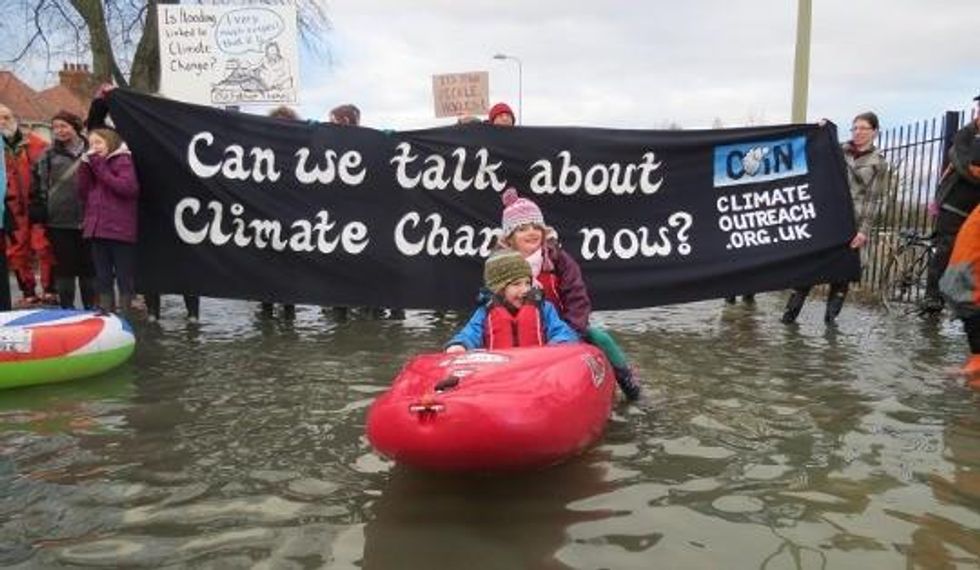Earlier this week a flash mob of Oxford residents took to the waters that have submerged their suburban homes for the past two weeks. A banner between their canoes carried a simple request: "Can we talk about climate change?"