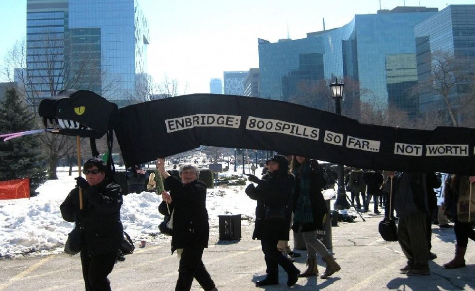 Toronto350, the group that published the community report on Line 9, "Not Worth the Risk", is insisting on an environmental assessment. They call the federal government, "morally bankrupt" where environment and climate policy is concerned. Given, that the Harper government is stripping Canada of environmental protection legislation faster than you can say "tar sands," it's abundantly clear that Ottawa has no interest in environmental protection or the potential poisoning of water, land, people and wildlife.