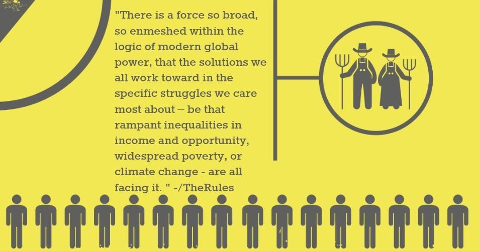 This is a provocative claim, pregnant with meaning and implication. If it’s true in the way we believe it to be, it means there is an identifiable form of totalitarianism casting a shadow over the entire human race.  It means that there is a force so broad, so enmeshed within the logic of modern global power, that the solutions we all work toward in the specific struggles we care most about – be that rampant inequalities in income and opportunity, widespread poverty, or climate change - are all facing it. Not a force that lives in any single person, organization or structure, but that is ephemeral in the way that all ideology is ephemeral.  It transcends and thereby unites the leadership of the vast majority of political parties, governments and corporations that have any proximity to global power. But for all this, it is also specific, definable, and visible through the right lenses.  Which means it can be challenged.