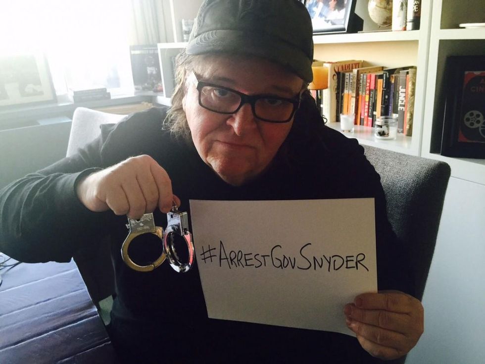 When the police have an "active shooter" situation in a building, they must first stop the shooter before they can bring aid to the victims. The perp who allowed the poisoning to continue once he knew something was wrong -- and his minions who cooked the evidence so the public and the feds wouldn't find out -- must be removed from office ASAP. Whether it's via resignation, recall or prosecution, this must happen now because he is still refusing to take the aggressive and immediate action needed. His office, as recently as this past Thursday, was claiming the EPA had no legal authority to tell him what to do. You know the EPA -- that federal agency every Republican politician wants eliminated? Governor Snyder is not going to obey the law. He has covered up the crime, and I submit he has committed an act of voluntary or involuntary manslaughter. Last month I posted a meme of me holding a pair of handcuffs with the hashtag #ArrestGovSnyder: