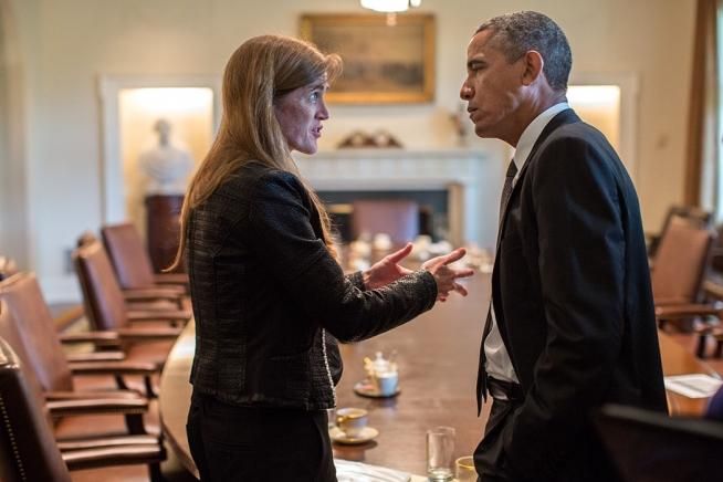 President Barack Obama talks with Ambassador Samantha Power, U.S. Permanent Representative to the United Nations, following a Cabinet meeting in the Cabinet Room of the White House, Sept. 12, 2013. (Photo: Official White House/Pete Souza)