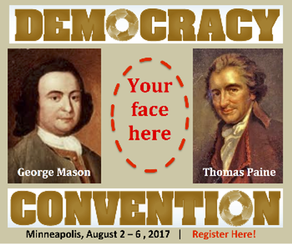 This is not a partisan convention. It isn't sponsored by political parties or their operatives. It isn't backed by corporate special interests. It is small "d" democrats coming together to give rise to a democracy movement so the promise of Paine's version of American Democracy based in human rights is realized. The Democracy Convention is eight different conferences under one roof, and it is incredibly affordable, to make it possible for all to attend.