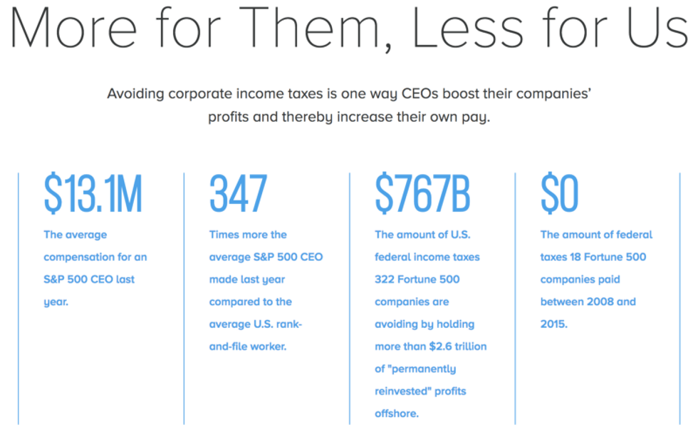We must demand that the wealthy and large corporations begin paying their fair share of taxes.