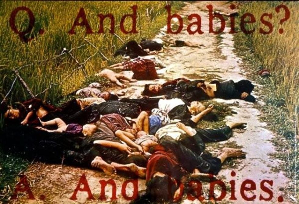 In the wake of My Lai, the poster produced by the antiwar movement featured a horrific photograph of bodies piled up in the village. There were only two lines of text: "And babies? And babies."