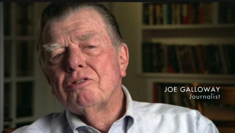 Not coincidentally, when Galloway recounts a landmark 1965 battle in the Ia Drang Valley, where the Air Cavalry unit he was with faced a massive, frontal attack by the Viet Cong, he notably lapses into the first-person plural: "We had two things going for us. We had a great commander and great soldiers and we had air and artillery support out the yin-yang." That Galloway later co-authored a New York Times bestselling book about the battle with its US commander, Lt. Gen. Hal Moore, and was later awarded a Bronze Star by the US Army for helping rescue a wounded soldier during that battle, goes unmentioned by Burns.
