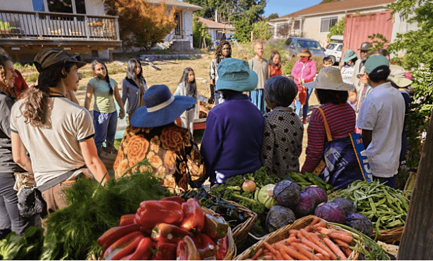Ramos-Stierle tries to carry this same gratitude for food and community to FrutaGift in Oakland. "Before we start distributing the food, we make a gratitude circle. We hold hands, and someone gives a blessing in their own tradition to honor all that made it possible to gather and be nourished in such a way." Visitors to FrutaGift and the Free Farm Stand have gone on to do the same in their own communities.
