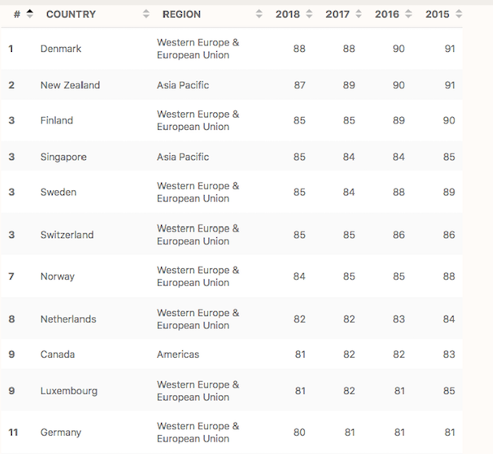 The United States fell 6 places to a ranking of only 22 in Transparency International's's list of countries by corruption. Under Trump, America is not in the top 20 for fair dealing.