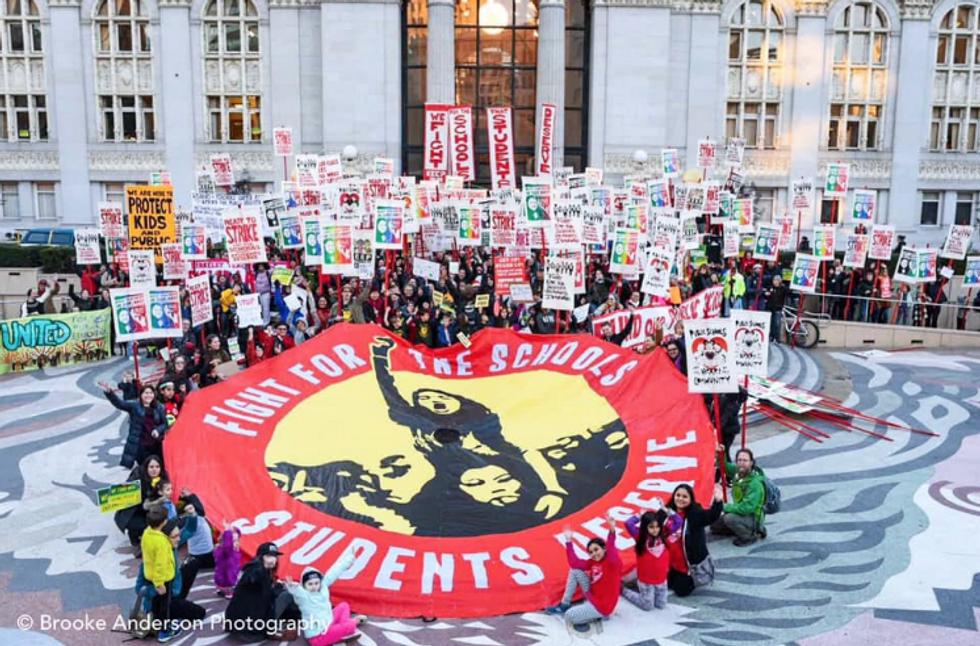 For the last two months a massive #strike-ready art-making collaboration between the Oakland Education Association, local artists and a team of arts organizers has been building momentum, participation and created thousands of pieces of hand made art that has been used in public actions leading up to the strike and will be seen on the picket lines.