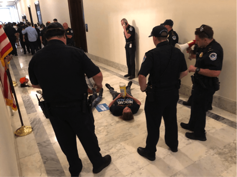 "McConnell wields his power in the Senate to diminish the checks and balances designed to protect our nation from autocratic rule," says Adrienne Evans, from United Vision for Idaho, one of the six who were arrested. "He's determined to take away your health care, and he's motivated to do whatever it takes to make sure that happens, just so he can demonstrate this power."