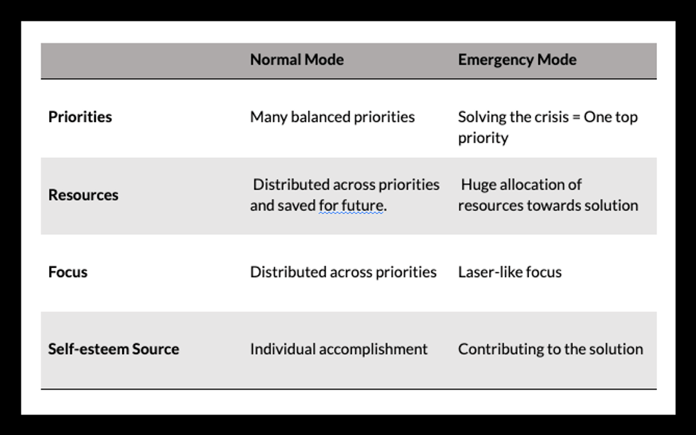 Emergency Mode: Optimal Functioning in an Existential (or Moral) Crisis