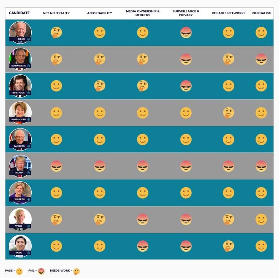 Your Emoji-Based Guide to Where the 2020 Candidates Stand on Media and Tech Policy