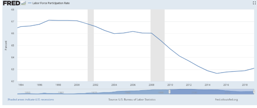 Another economic indicator, the labor force participation rate, has hovered around 63 percent of the population through most of Obama's post-Recession presidency, which is where it stands today. Nevermind that the nation's weak labor participation rate was the foundation for candidate Trump's claim that the unemployment rate was really 43 percent.