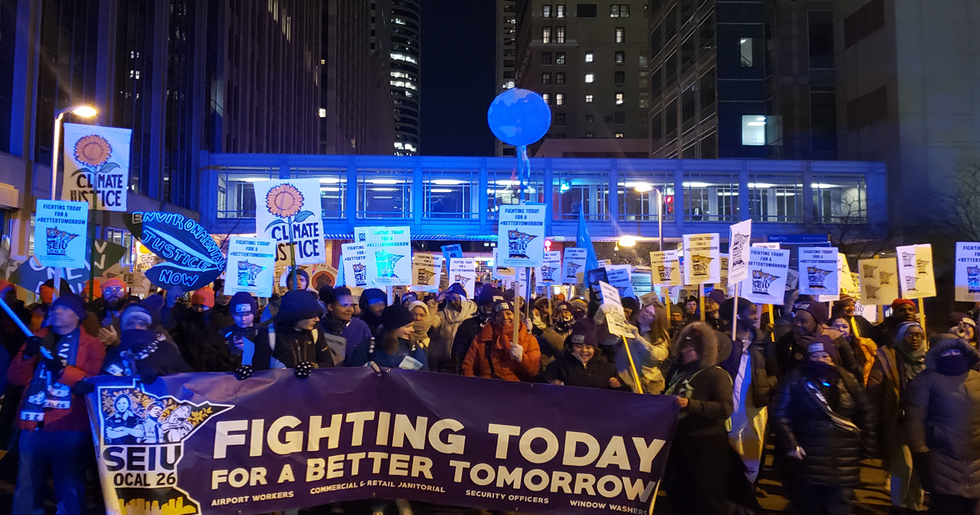 "Everyone I talked to left feeling inspired and energized for their campaigns. I don't know that I've ever seen a more powerful union action. There were at least a couple hundred environmental allies that joined the picket lines - which is really impressive. The chants shifted from English to Spanish to Somali, people were dancing to hip hop and Latino music. It was a great mixing of all the parts of our movement we need: white middle class environmental activists, young diverse climate strikers, low wage immigrant workers - all fighting for the same set of demands."