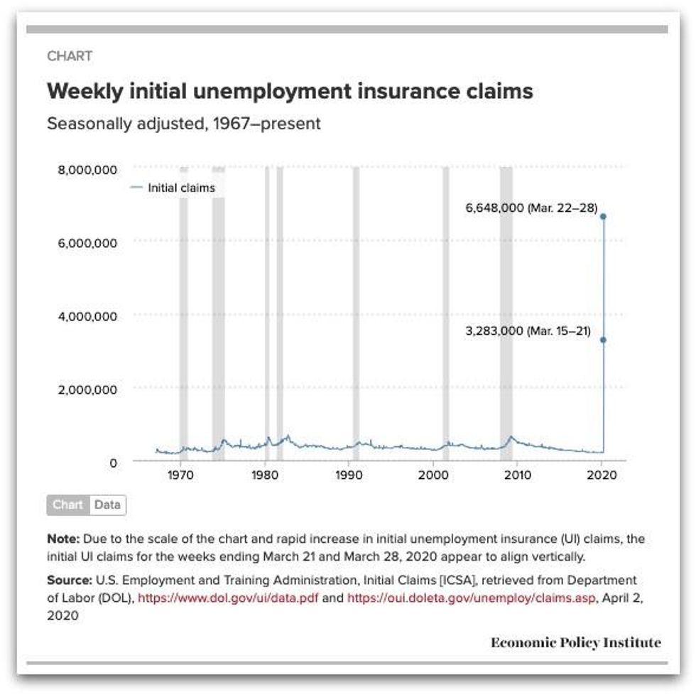 'Portrait of Disaster': Initial Unemployment Claims in US Jump from 211,000 to 6.6 million in Just 3 Weeks