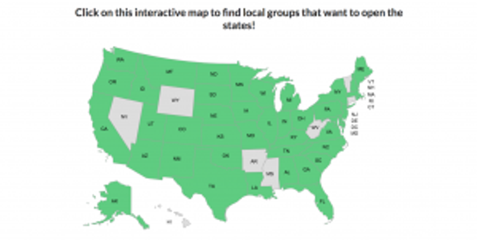 "At OpenTheStates.com, you can get plugged in to your local group dedicated to re-opening your community's economy," COSA says. "These groups are not affiliated with the [COSA], but we want to give all our supporters and volunteers an opportunity to get involved."