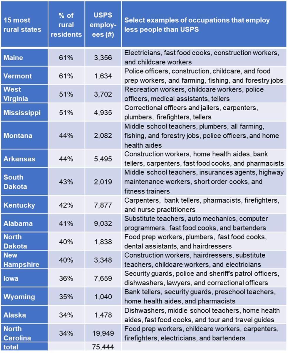 The U.S. Postal Service is a critical source of decent jobs and revenue in rural states