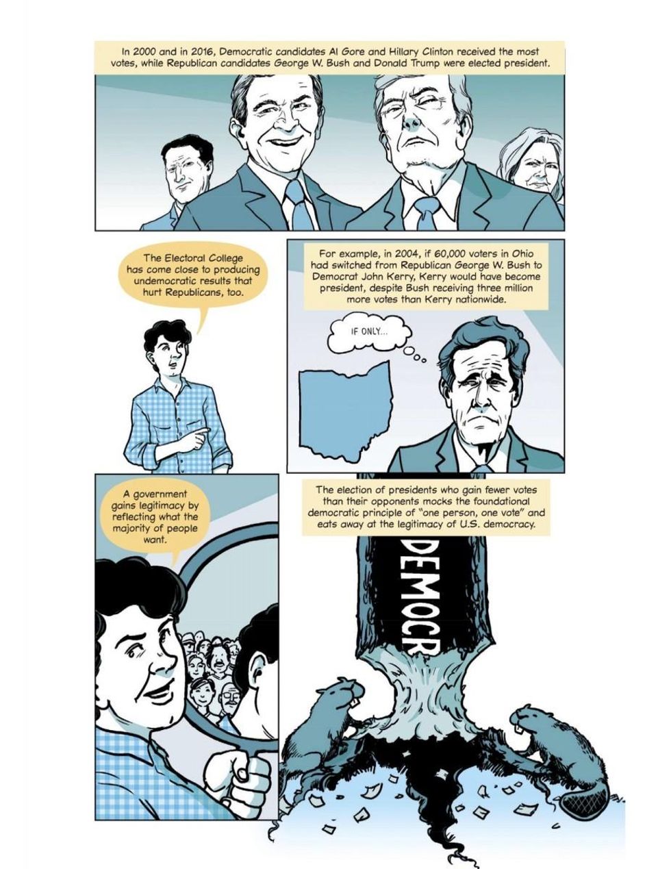 The book outlines key problems in American democracy, proven solutions, and stories of activists working to effect change. It documents the influence of money in politics, gerrymandering, voter suppression, the failings of the electoral college, our current voting methods and more--and the format makes the content widely accessible. It's illustrated by acclaimed cartoonist George O'Connor.