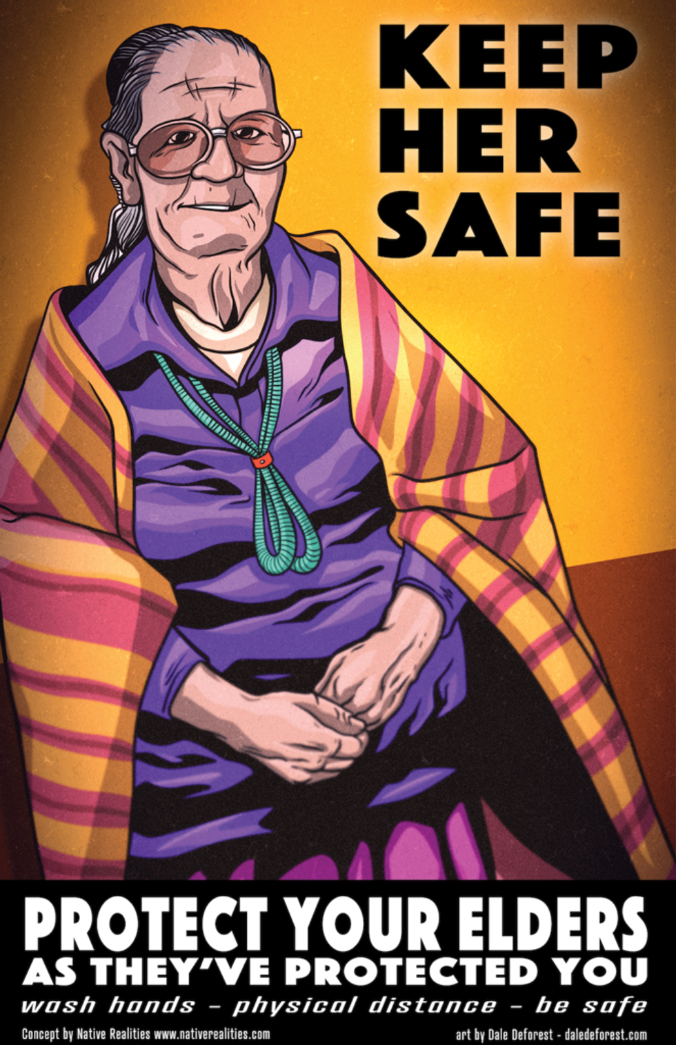The image above was created by Native Realities for First Nations audiences who have a strong tradition of honoring elders. This is a terrific concept that could be replicated for many other ethnicities or groups: Who wouldn't want to protect their grandparents? (Answer: Someone who has been made to believe that doing so is a sign of weakness and subservience to liberal dogma).