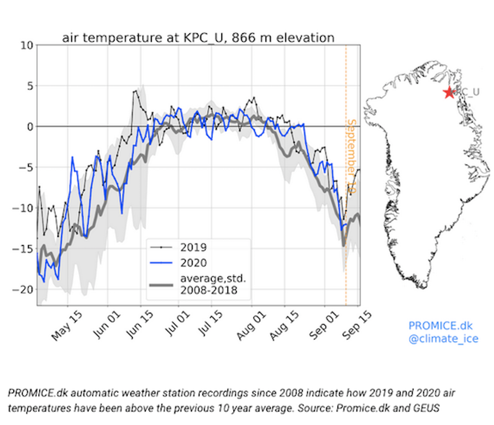 The survey gives a graph where you can see how out of line 2020 has been with the average temperatures of the previous decade: