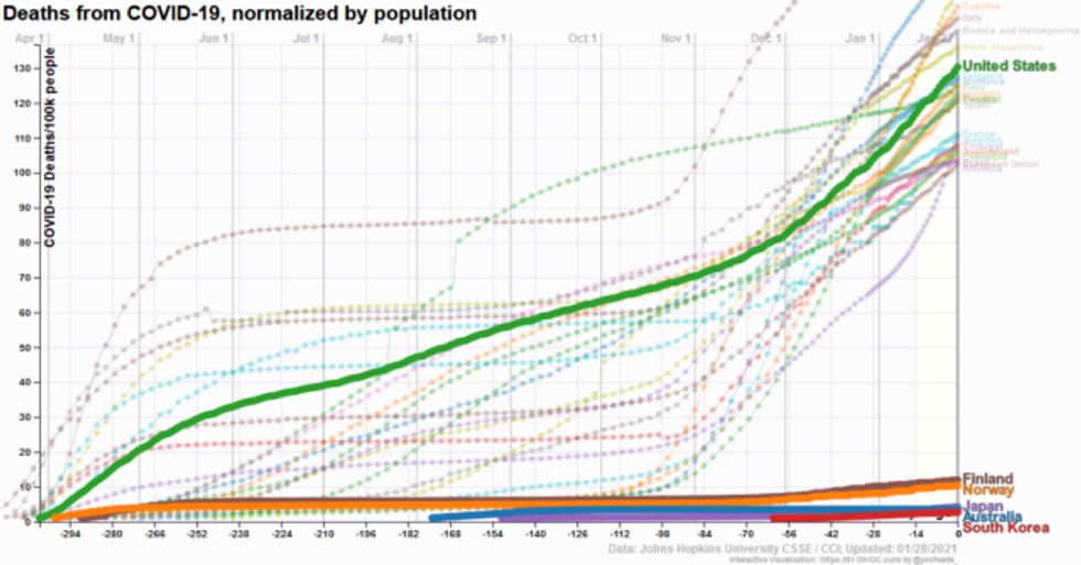The Times' specifying "the United States and other democracies" as the group of countries China is comparing itself to is a bit of a red herring. While it's true that many U.S. allies weathered the pandemic as poorly as the U.S. did, there are several wealthy countries with multi-party political systems that did far better--including New Zealand, South Korea, Australia, Japan, Iceland, Norway and Finland. So the disparity is not so much between "authoritarian" states and "democracies," as the Times suggests, as between countries that took the coronavirus seriously and those that didn't.