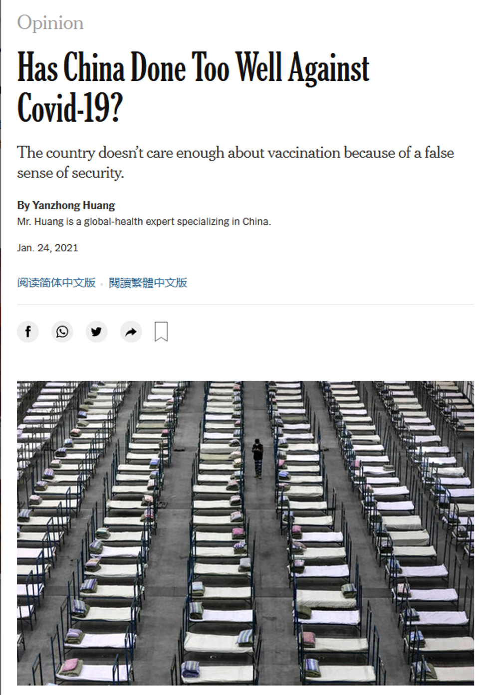 If maintaining that China's Covid response wasn't really all that great doesn't seem plausible, maybe you could argue that it was too good? That was the actual argument of a New York Times op-ed (1/24/20), headlined "Has China Done Too Well Against Covid-19?"